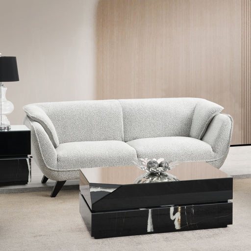 Unwind in the sophisticated charm of the Nayeli sofa, draped in light gray fabric. Accompanied by plush seating, it offers a perfect blend of comfo...